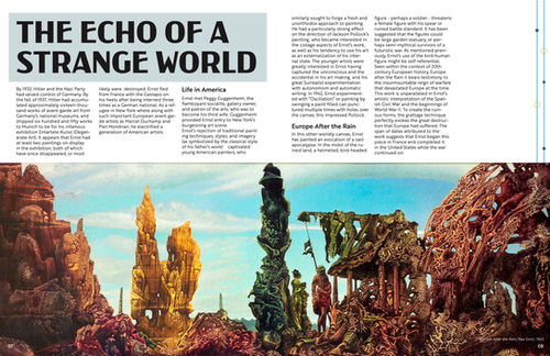 Every page is intentionally crafted to echo the abstract, uncanny nature of Ernst’s pieces while still offering a smooth, intuitive reading experience. The layout plays in that space between order and the wonderfully strange, inviting the reader to drift a little deeper into his dreamlike universe.